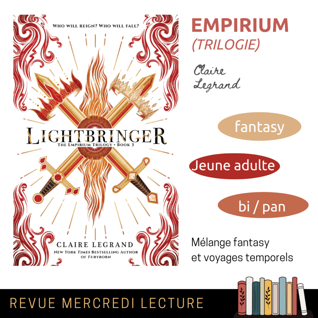 J’ai adoré le mélange fantasy et voyages temporels. L’univers est un peu classique avec les éléments naturels comme sources de pouvoir mais on a de beaux mélanges avec d’autres aspects plus mythologiques, science-fiction ou encore paranormal.